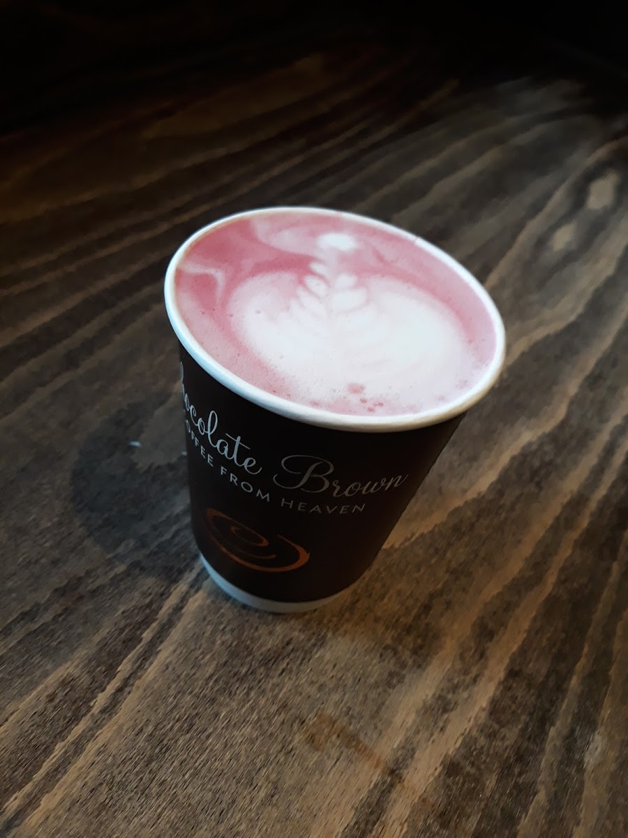 Walked in on my day off to get a turmeric latte but no turmeric in stock so i ordered the beetroot latte for the first time. It was made with oat milk and was presented very well with a nice design on top. The latte was delicious and would purchase it again for €3.80. Chocolate brown is located on the mainstreet of Portlaoise and has a nice layout and vibey place to sit and relax with a coffee. Will return again!!!